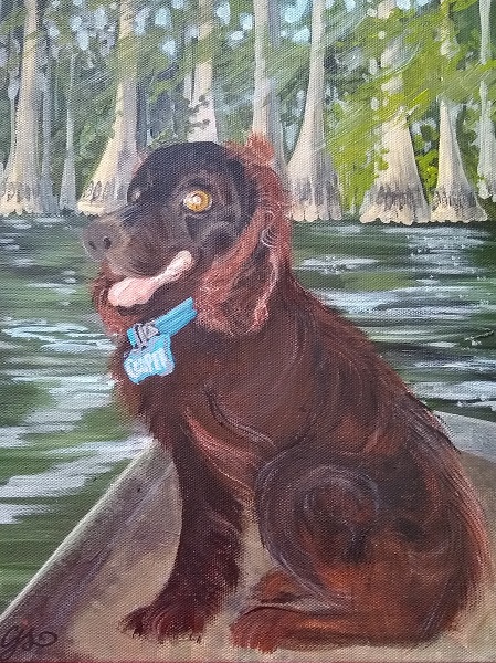 These guys are working in our area and storing some equipment on our property and they’ve had some far-ranging conversations with John every now and again. They both have dogs they love, and it was the week before Christmas. One young man was eager to get it for his “old lady,” for Christmas. I knew that would be impossible, but we talked and I had a smallish canvas I could start on, so he texted me photos of his pride and joy, a Boykin, the state dog.